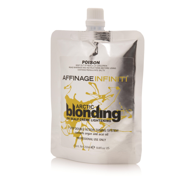 For superior results, Affinage Professional has created dedicated Arctic Blonde Toning Developers 4.5% and 7.5% to use with Arctic Blonding Crème. Using these salon professional hair lightening products together helps counteract unwanted yellow tones for clearer blonde results.