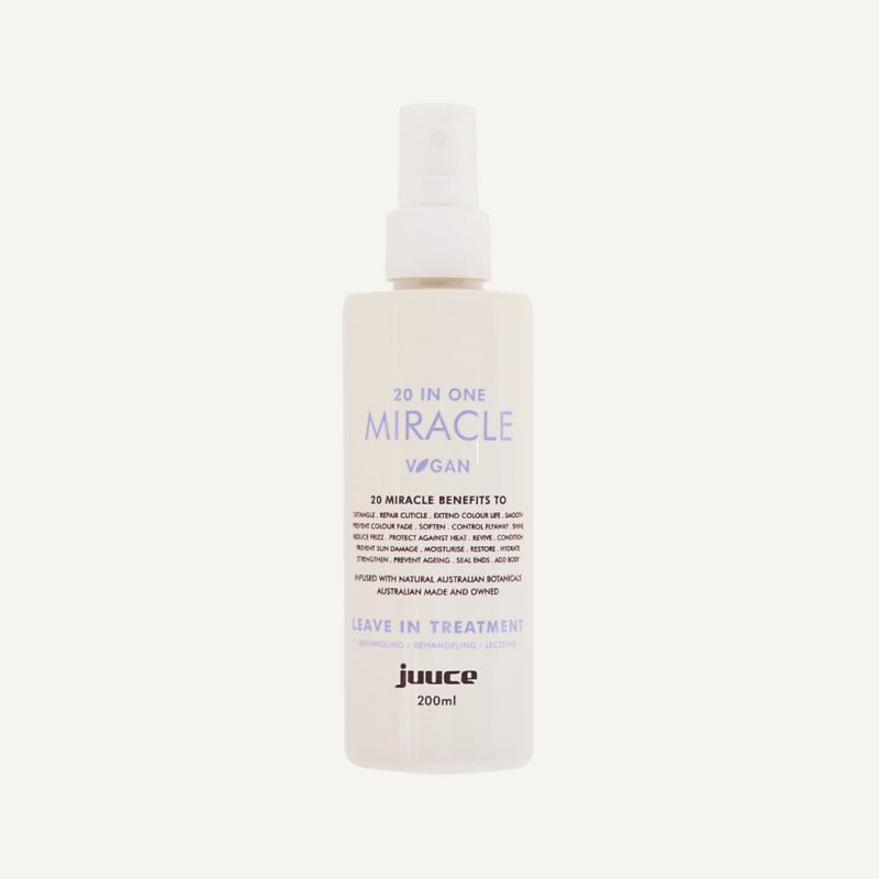 20 In One Miracle is a leave in treatment formulated to detangle, repair cuticle, extend colour life, smooth, prevent colour fade, soften, control flyaway, reduce frizz, protect against heat, revive, condition, prevent sun damage, moisturise, restore, shine, strengthen, prevent ageing, seal ends, hydrate, add body. Improve hair health and manageability.
