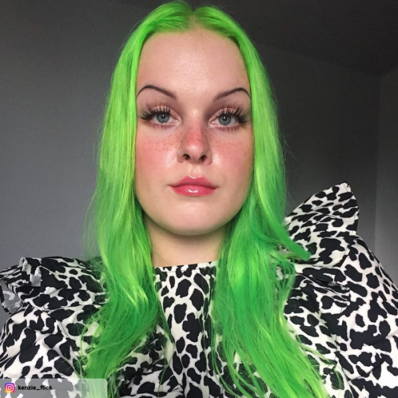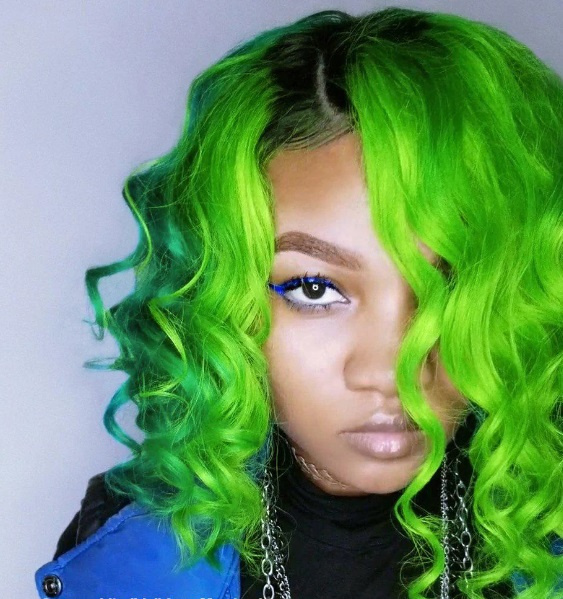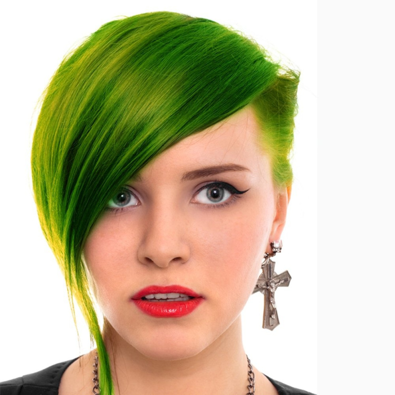 Electric Lizard® is a bright, neon green dye that looks as electric as it sounds. With vibrant, lime green hues, this shade glows brightly under black lights! For best results, we recommend lightening your hair to the lightest level 10 blonde before use.