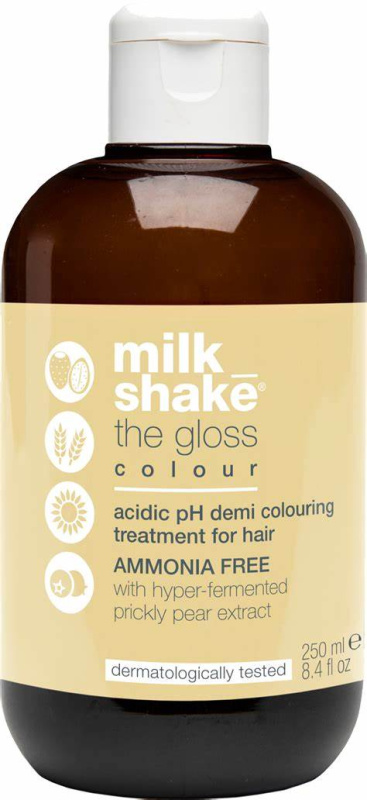 milk_shake the gloss color is an acidic pH demi coloring treatment for hair. It is an oil-based, ammonia-free, acidic pH demi coloring treatment that guarantees amazing color tones without lightening or modifying the hair’s structure.