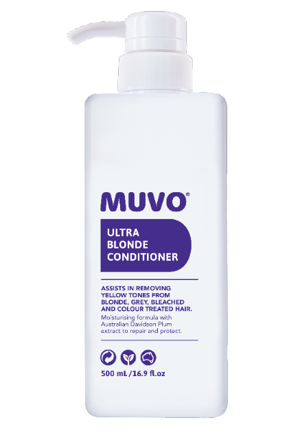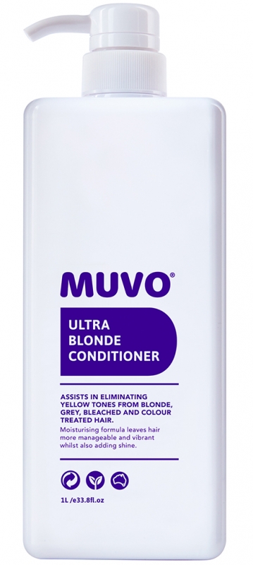 To use: After shampooing with Muvo Ultra Blonde Shampoo, squeeze excess water out of hair and apply conditioner. Massage deeply and leave on hair for 1-3 minutes. Rinse thoroughly.