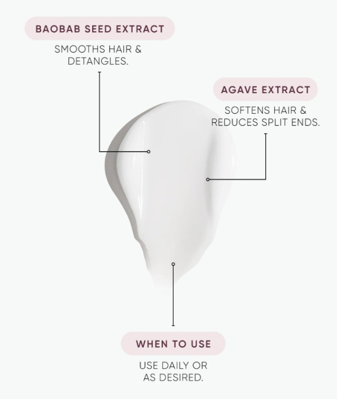 Our Signature Formula: A daily leave-in moisturising crème, with Baobab Seed and Agave Leaf Extract to smooth and soften hair. Enriched with our Signature Peptides and Ectoin Barrier Booster that assist to repair and strengthen, nurturing the scalp microbiome for your healthiest hair.