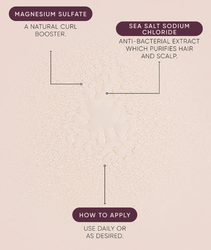 Our Signature Formula: An ocean-inspired sea salt styling texture mist. Enriched with our Signature Peptides and Ectoin Barrier Booster that assist to repair and strengthen, nurturing the scalp microbiome for your healthiest hair.