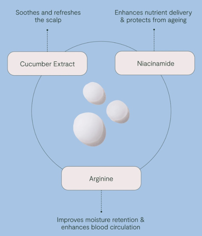 Cucumber Extract, Arginine & Niacinamide assist to calm scalp irritation, sensitivity & transport nutrients to support the hair’s natural growth cycle for optimal scalp & hair health.