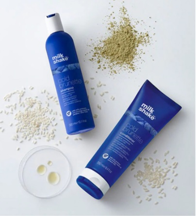 milk_shake cold brunette shampoo is a specific blue shampoo for brown hair. The special blue pigments contained within the new milk_shake cold brunette range, counteracts the red/orange tones in brown hair, remove unwanted warm tones and make cool toning treatments last longer. It is ideal for natural or color-treated brown, light brown or dark blonde hair. The active ingredients enhance the natural beauty of the hair leaving it soft and shiny. Moringa oil is rich in oleic and fatty acids and has an emollient and conditioning action while Integrity 41® , sunflower seed antioxidant complex that guarantees long-lasting color over time. Milk proteins: supplement and condition the hair's structure.