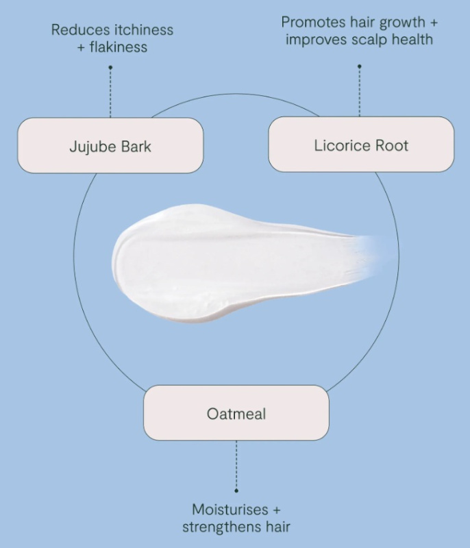 Jujube Bark, Licorice Root & Oatmeal assist to provide relief from itching & irritation, calming sensitive scalps. Restores scalp vitality & assists to support the hair’s natural growth cycle for optimal scalp & hair health.
